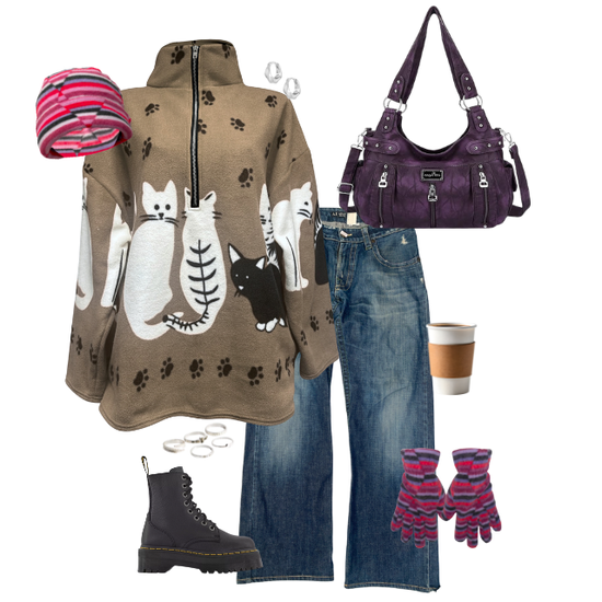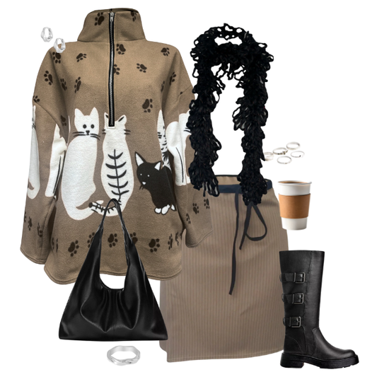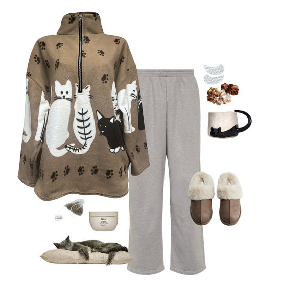 beige cat print fleece *PRE-ORDER*