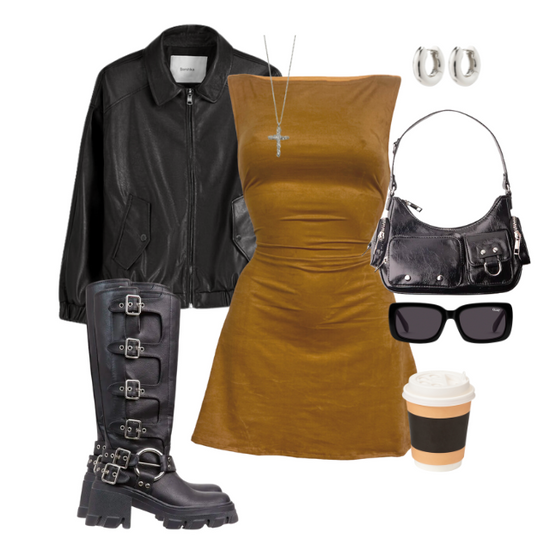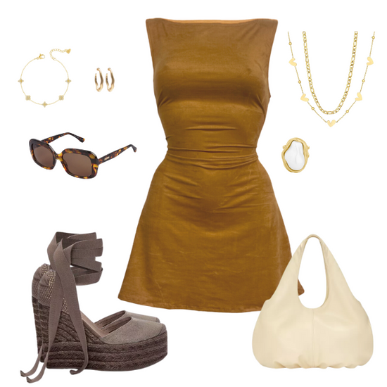 brown faux suede cinch mini dress