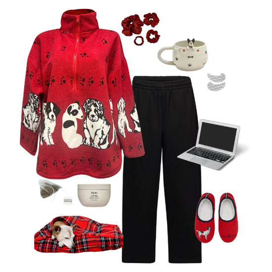 red dog print fleece *free scarf*
