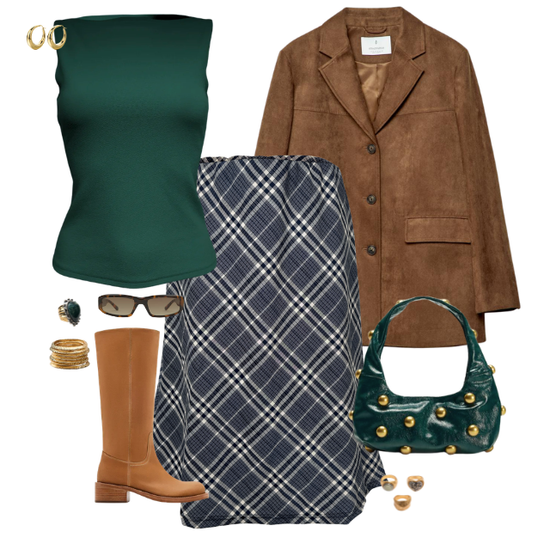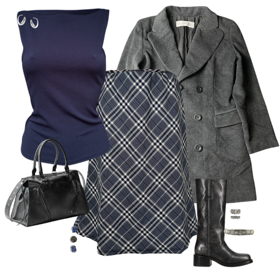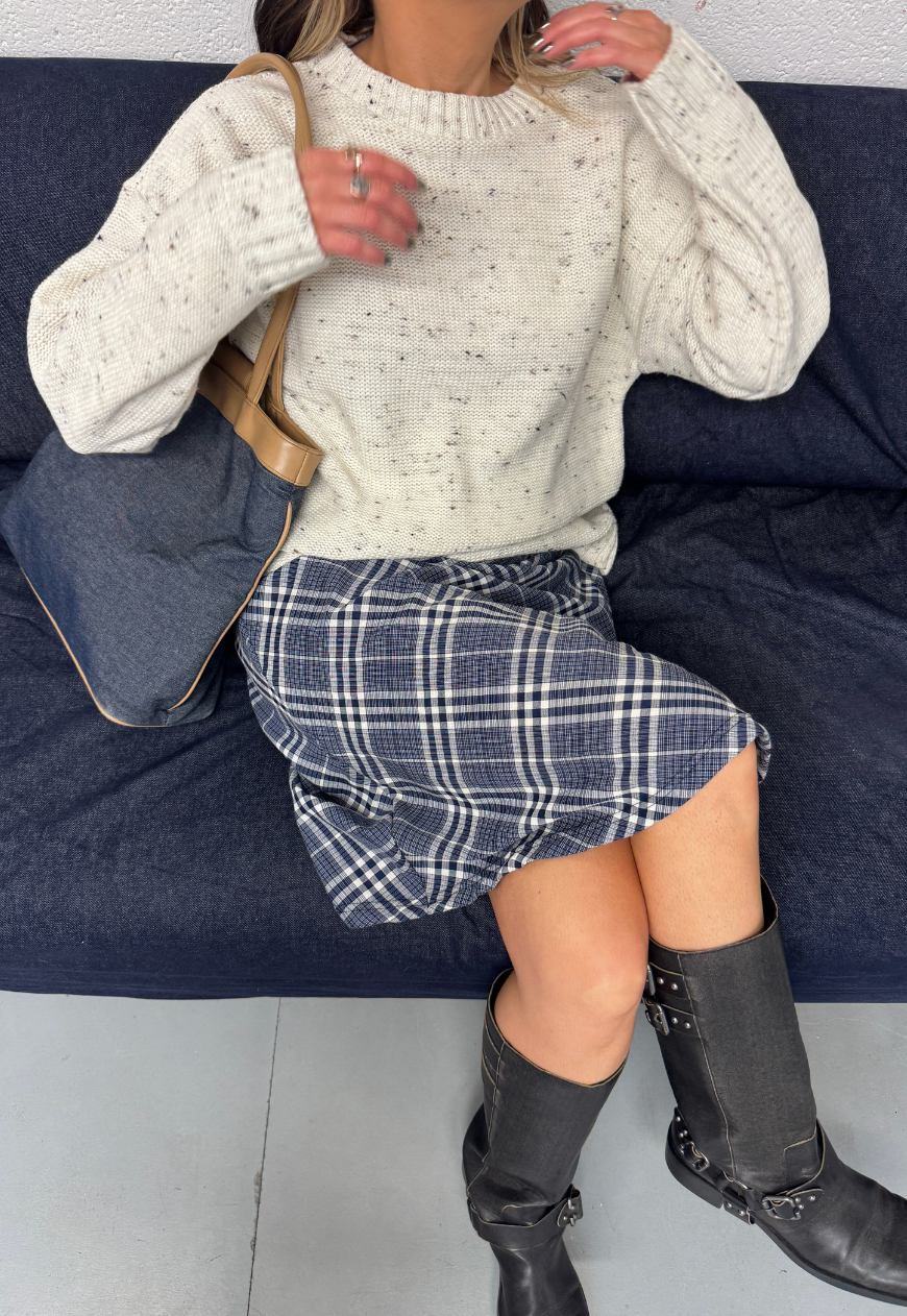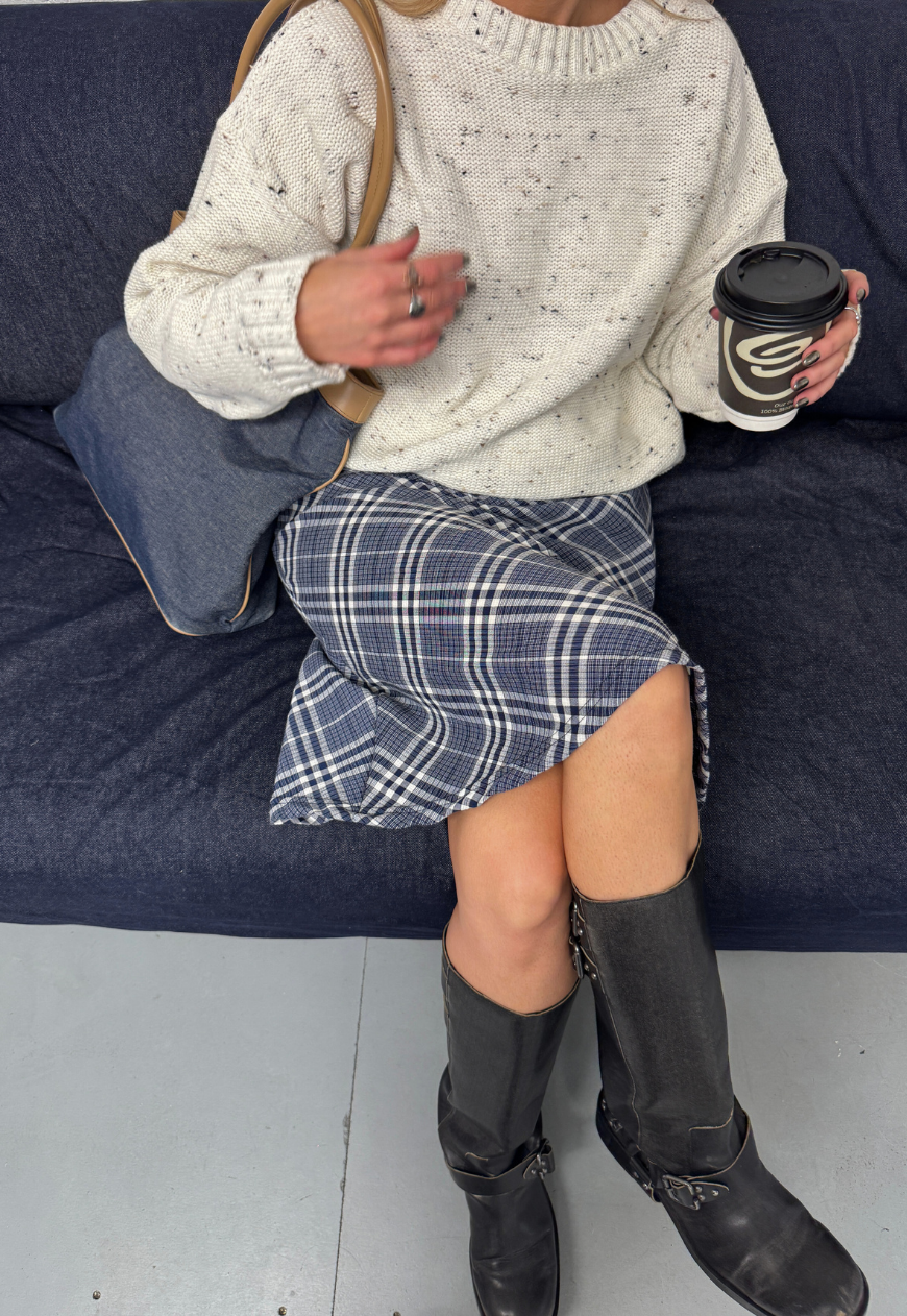 blue check midi skirt