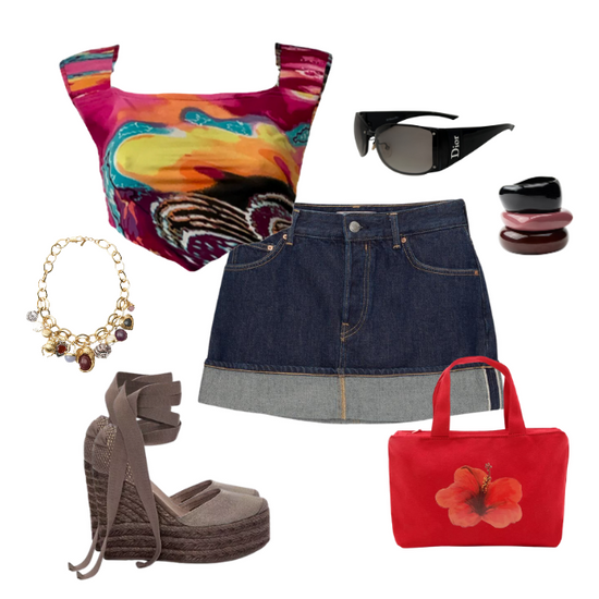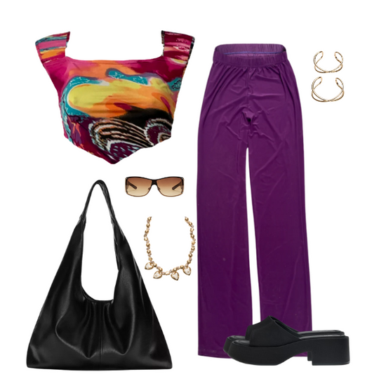 - Made from super stretchy, soft, slinky dead stock fabric in a 'Sun down' multi coloured swirl print